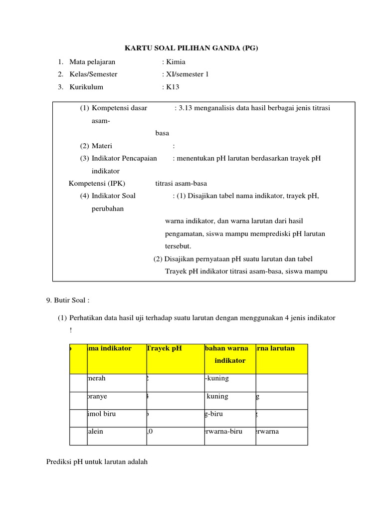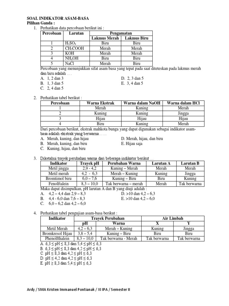Pada pengujian sampel air limbah diperoleh data sebagai berikut : Batasan ph dimana terjadi perubahan warna indikator disebut trayek perubahan warna. Xi ipa 5 sumber : Soal ph larutan asam basa berilah tanda silang (x) pada huruf a, b, c, d, atau e di depan jawaban yang tepat! Oleh admindiposting pada 12 januari 202113 januari 2021. Contoh soal warna indikator trayek ph asam basa. Berapakah trayek ph larutan x tersebut! Contoh soal menghitung ph derajat keasaman larutan suatu indikator bekerja pada trayek ph tertentu dan akan memberikan suatu warna gradasi disekitat trayek ph tersebut. Contoh soal menentukan ph asam basa berbagi contoh soal. Rekapitulasi persentase dan prioritas penyebab rendahnya. Berdasarkan data di atas diperoleh. Gambar berikut digunakan untuk mengerjakan soal nomor 1 dan 2. Contoh soal dan pembahasan menghitung ph.